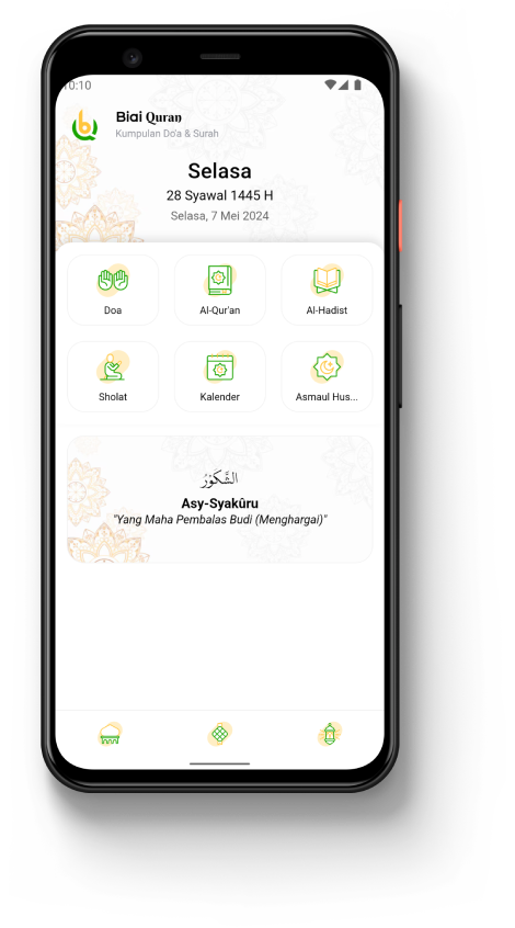 Biai Qur'an menyediakan kumpulan doa-doa harian, lengkap dengan latin dan terjemahaannya.